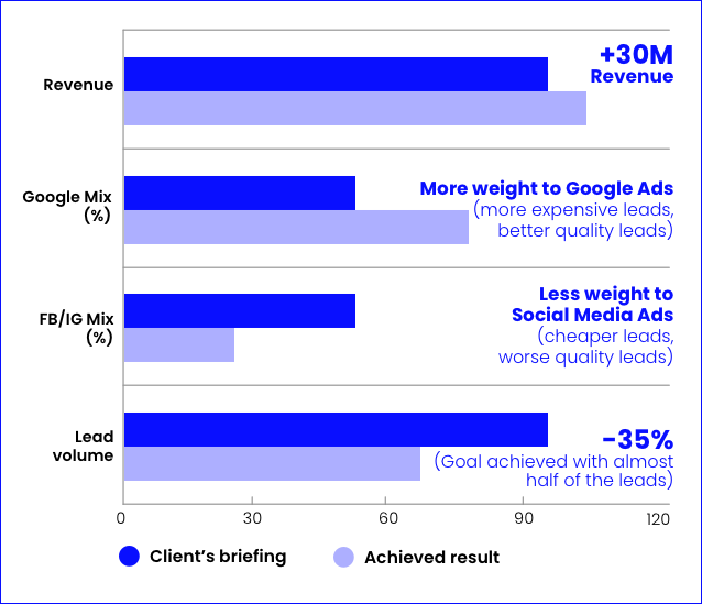 Less is more: the goal is achieved with almost half the number of leads. This case shows that the quality of the leads matters a lot.
